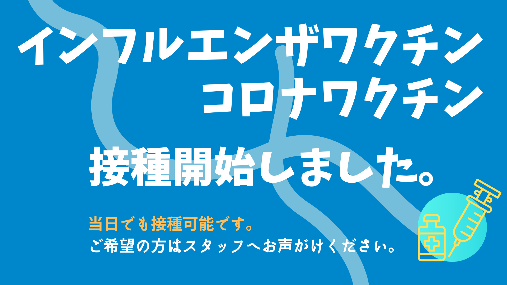 インフルエンザワクチン、コロナワクチン接種開始しました。