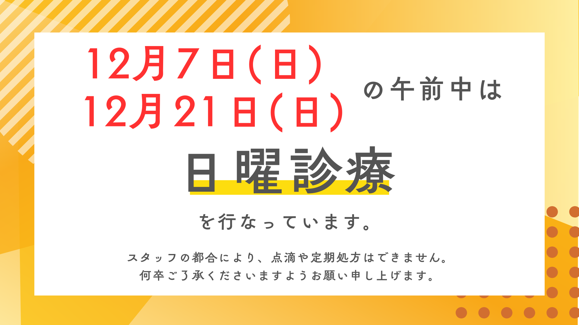 12月、下記日程で日曜日診療を行います。